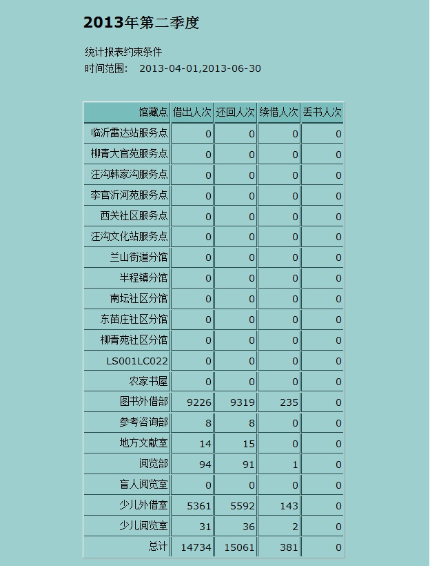 2013年第二季度借阅人次统计