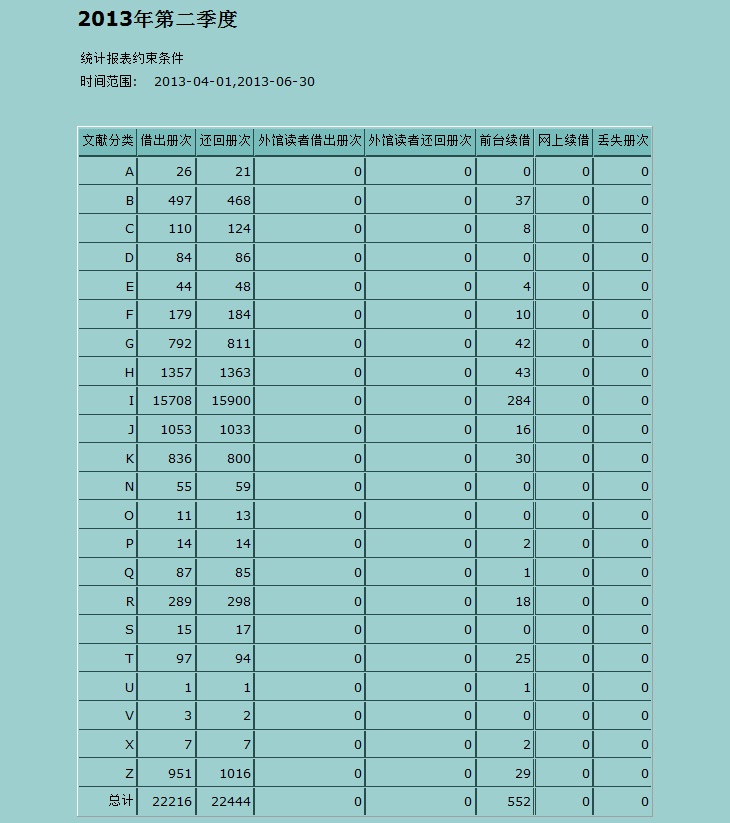2013年第二季度文献借阅量统计
