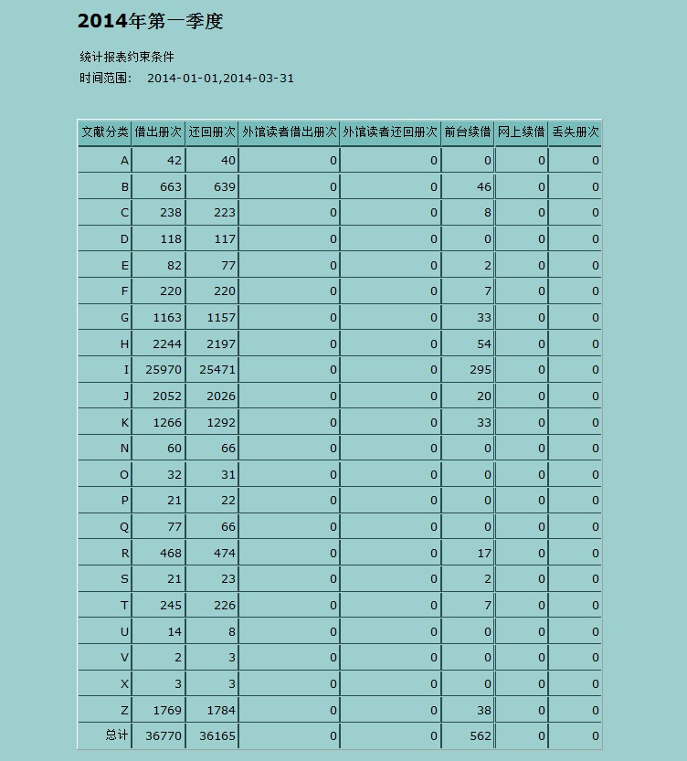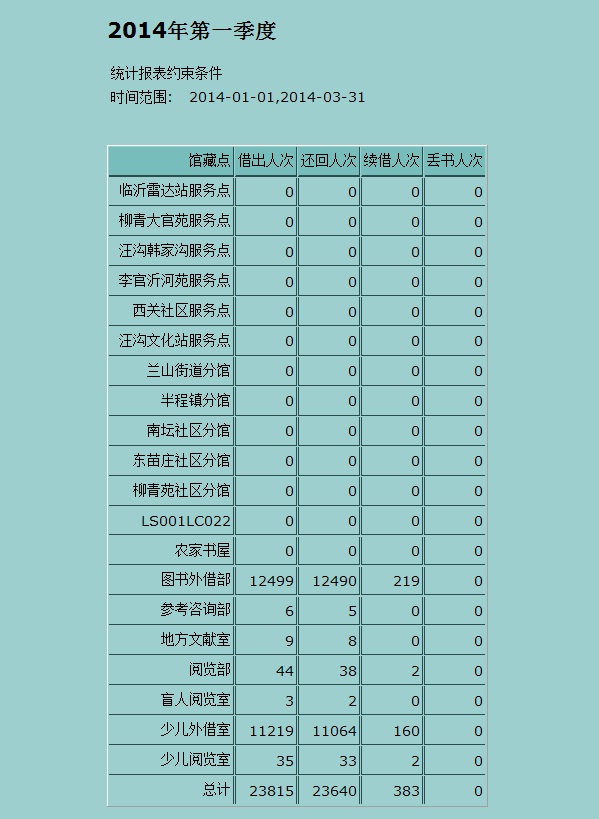 2014年第一季度文献借阅量统计