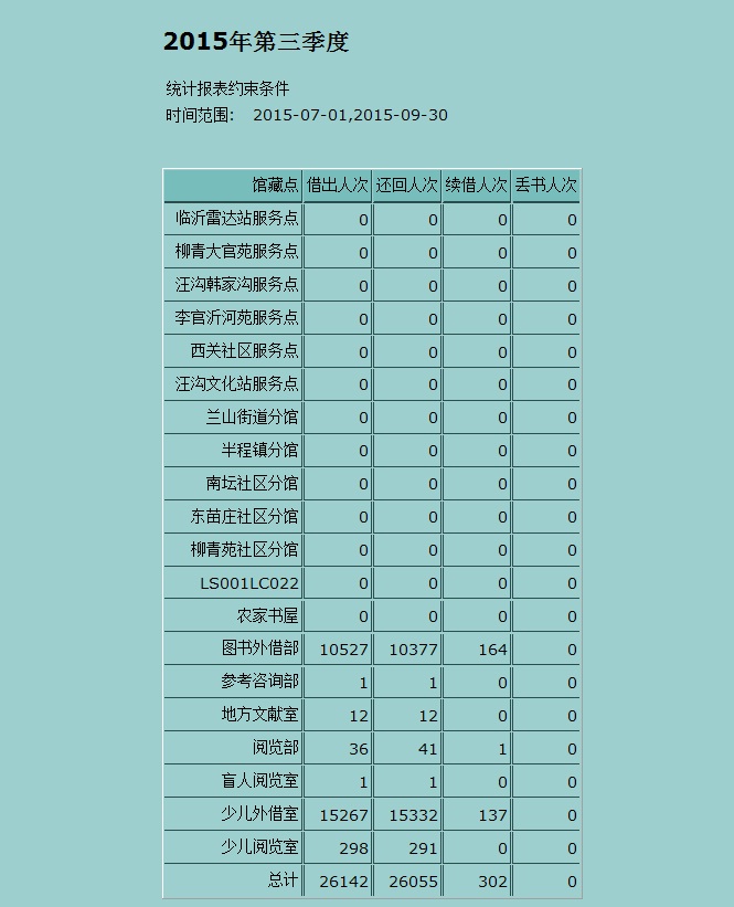 2015年第三季度借阅人次统计