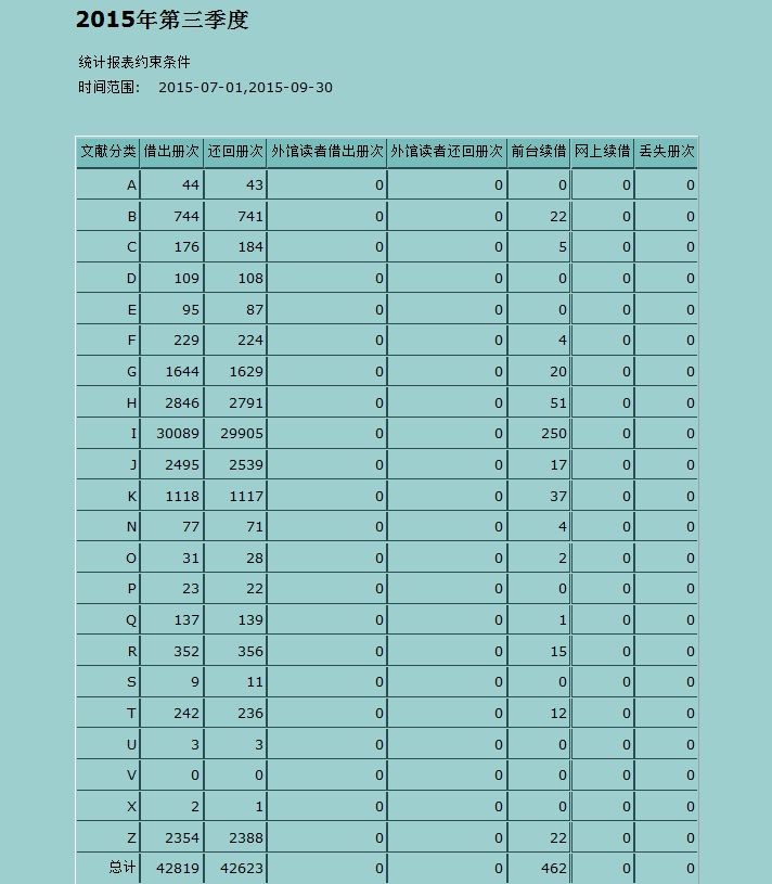 2015年第三季度文献借阅量统计