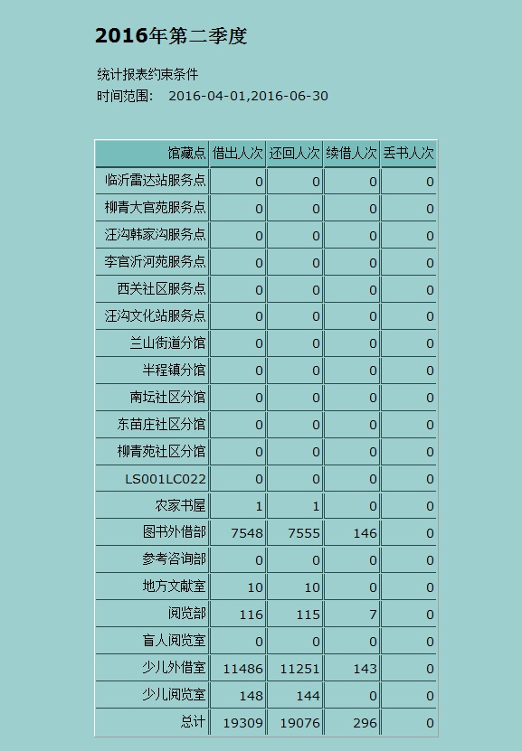 2016年第二季度借阅人次统计
