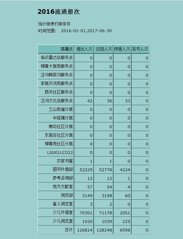 临沂市兰山区图书馆歌德借阅机流量统计2016年