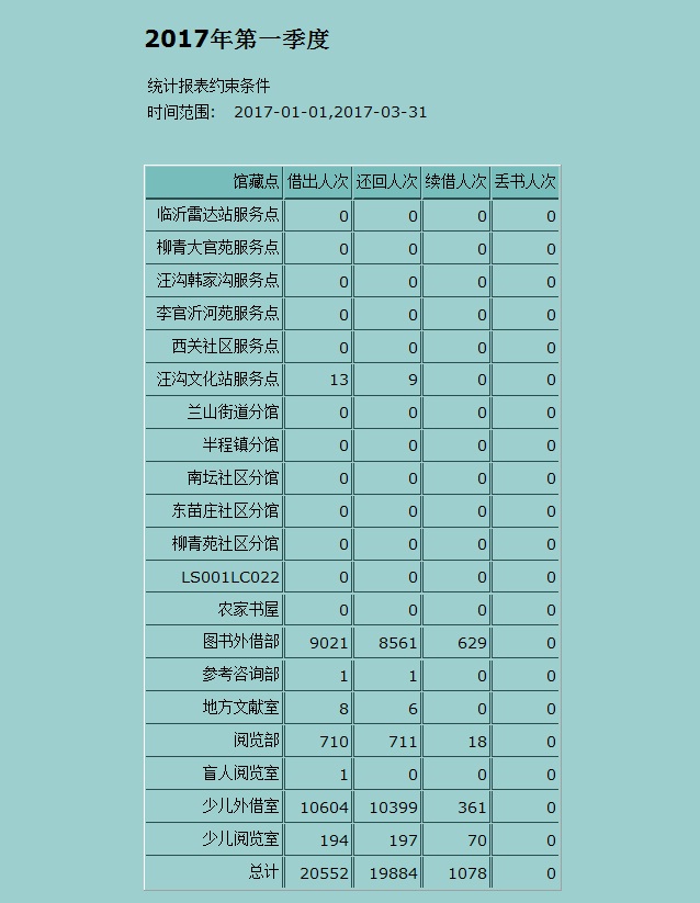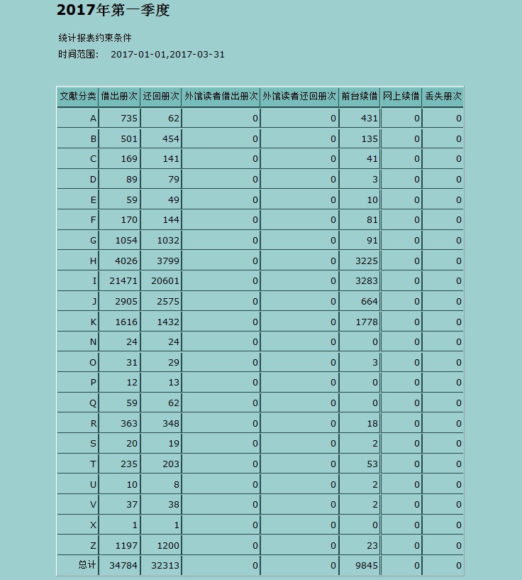 2017年第一季文献借阅量统计