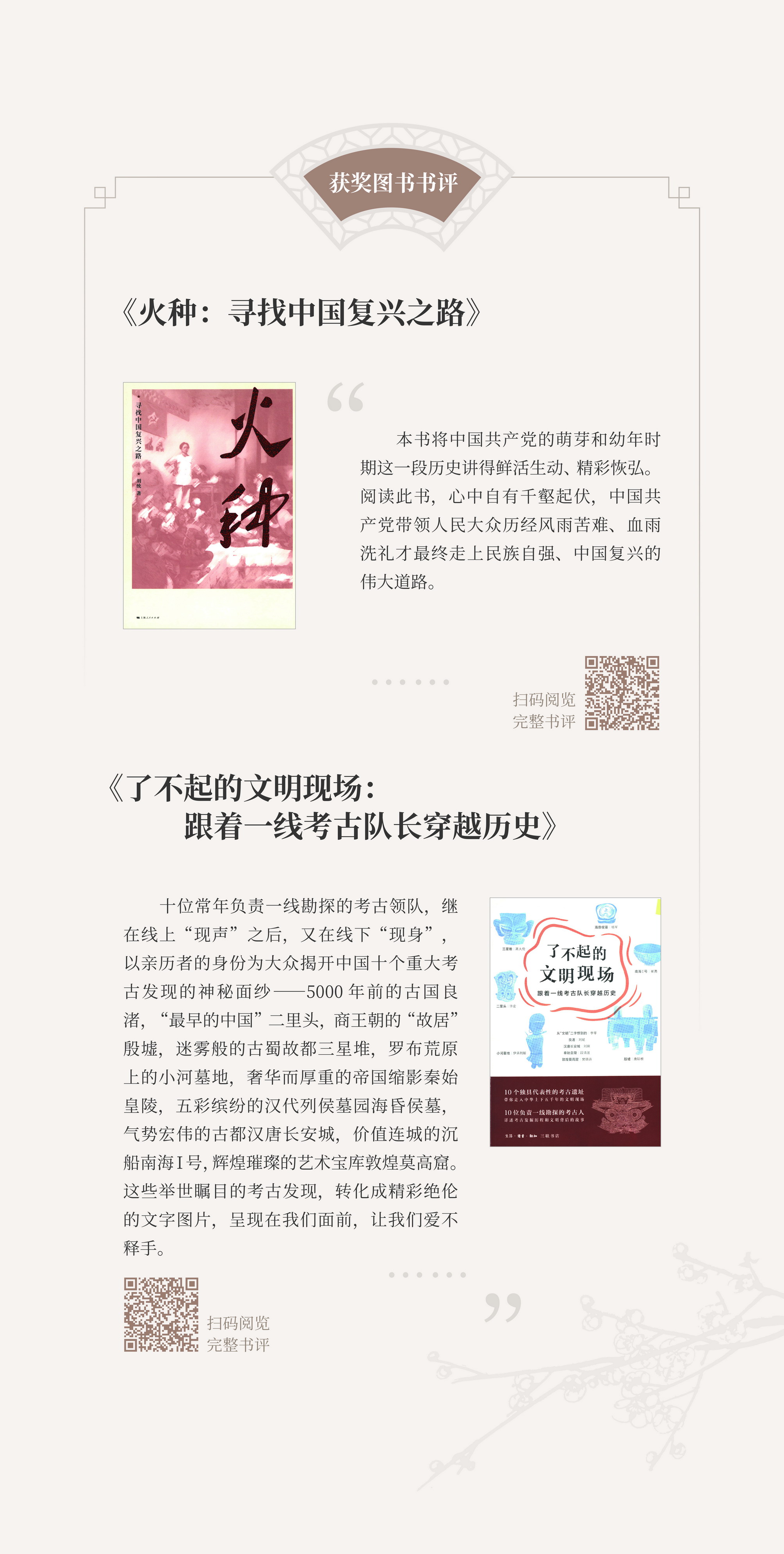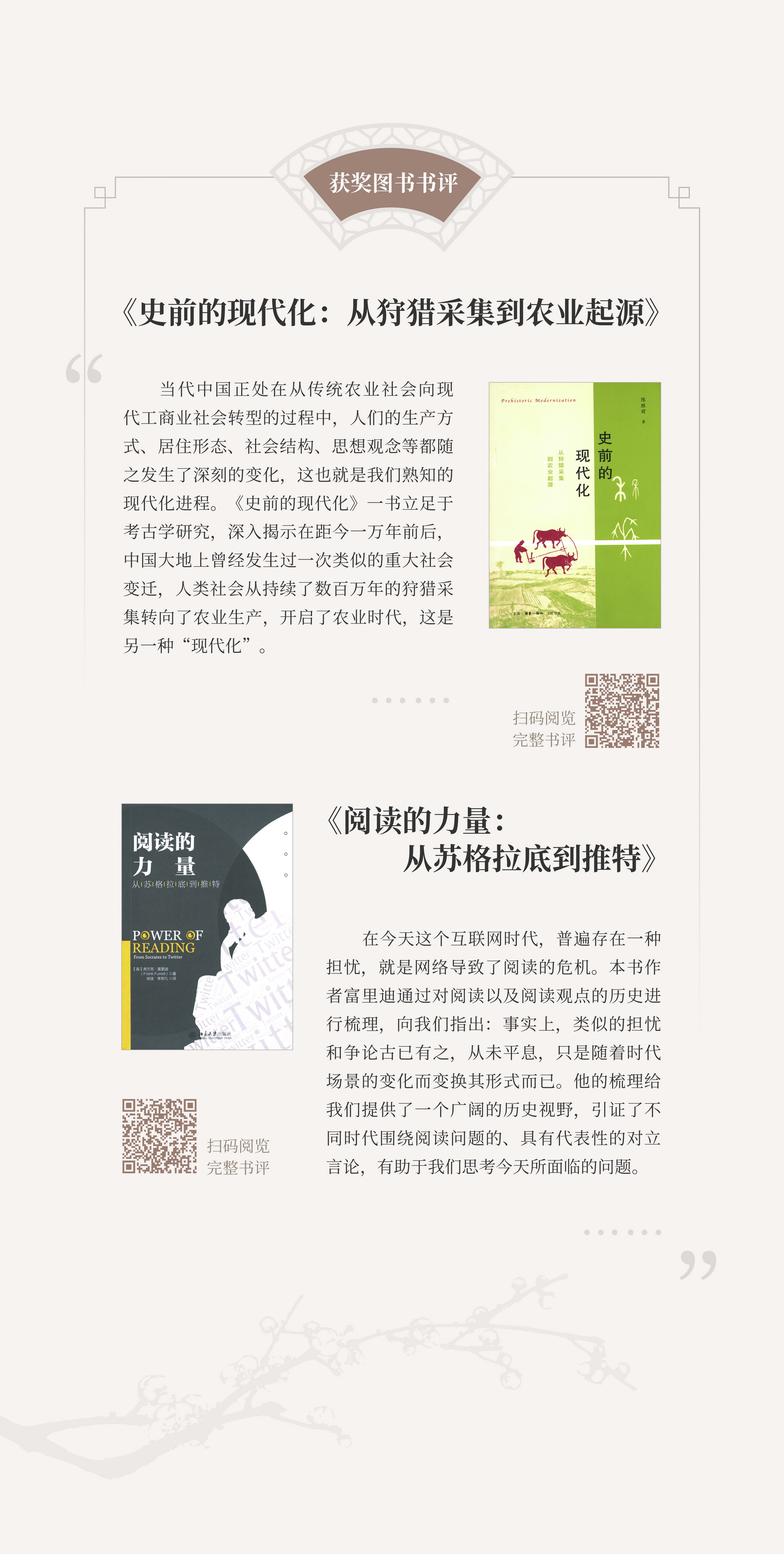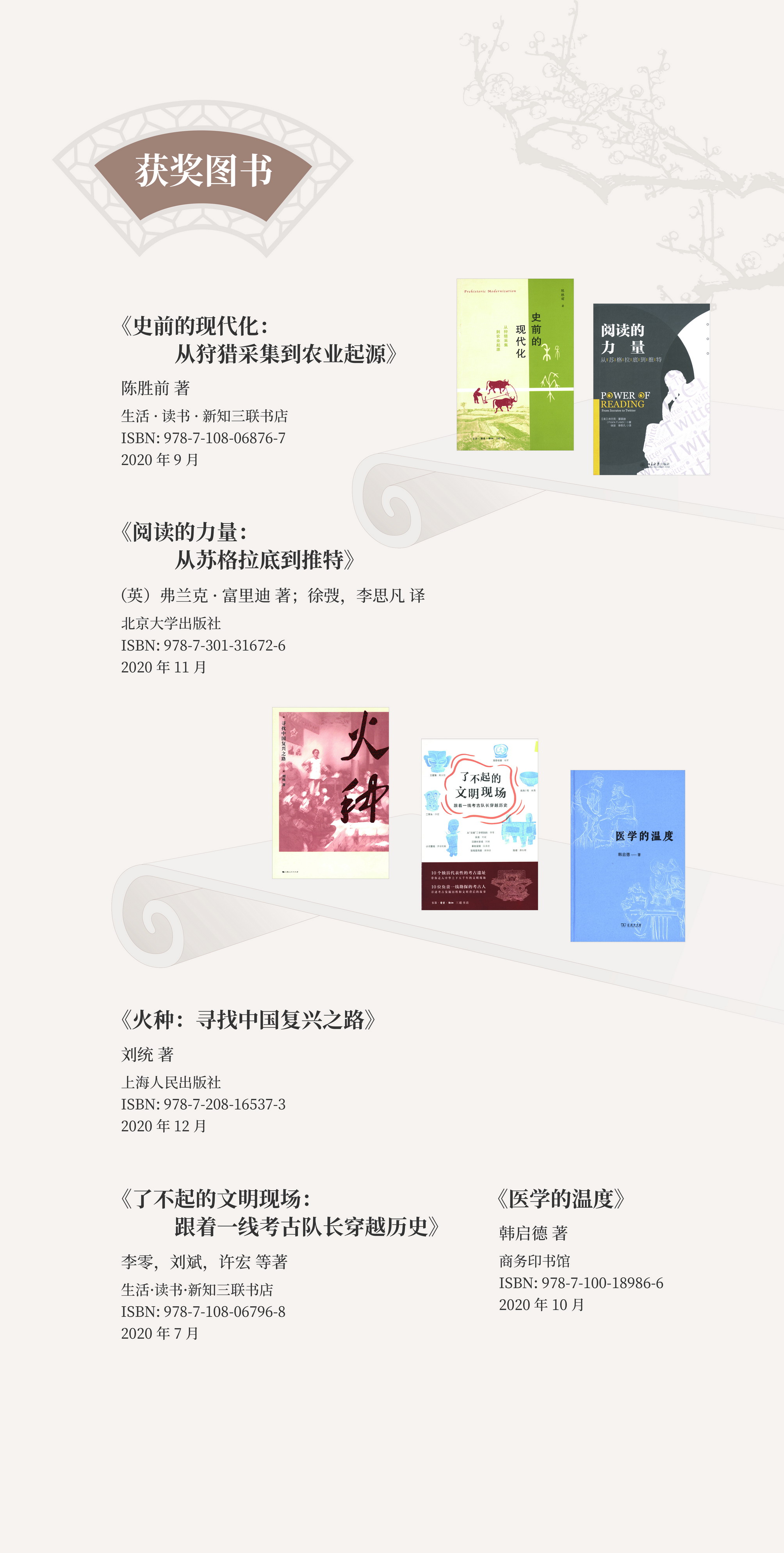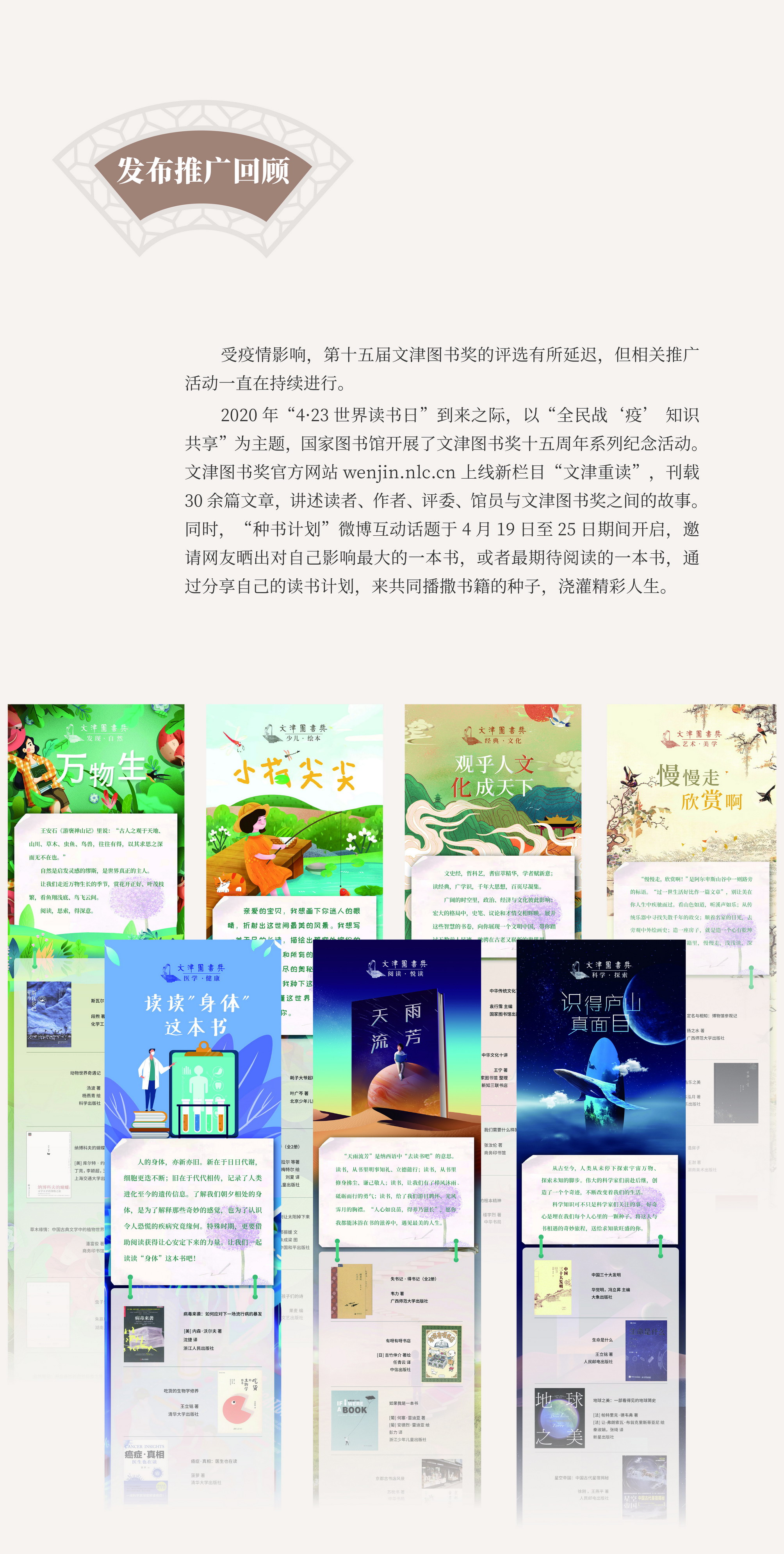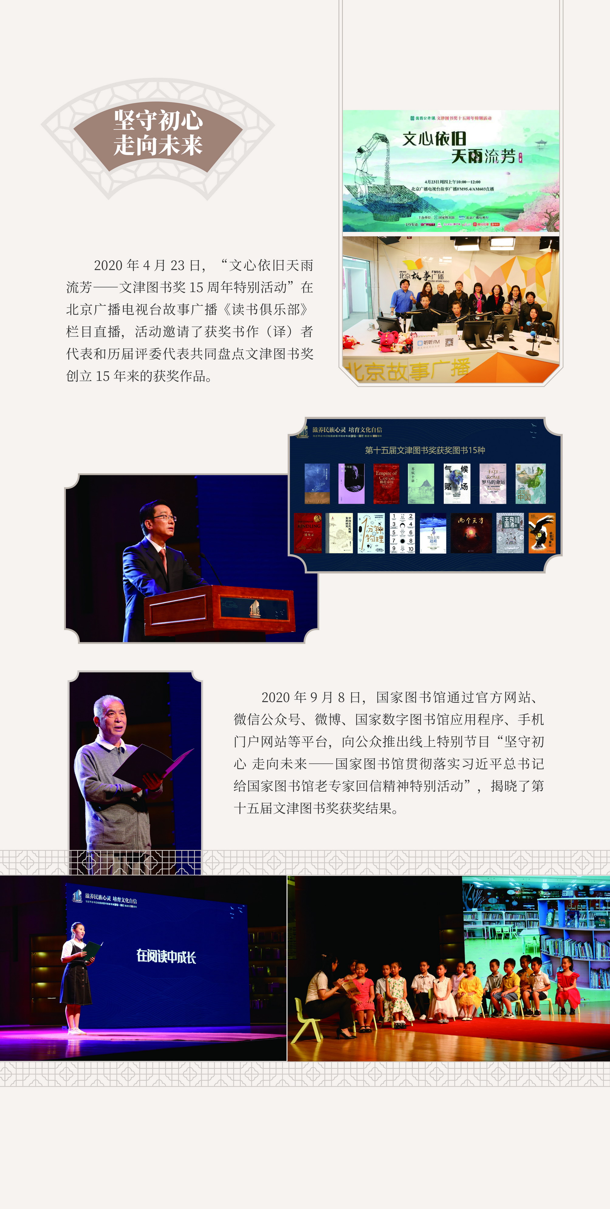 4月23日,在第26个世界读书日到来之际,国家图书馆与北京市公园管理中心合作举办“行走在阅读的时空里——第十六届文津图书奖发布暨北京公园阅读文化季启动活动”,现场揭晓了第十六届文津图书奖获奖图书《史前的现代化:从狩猎采集到农业起源》《深海浅说》《纽扣士兵》等20种,推荐图书49种。