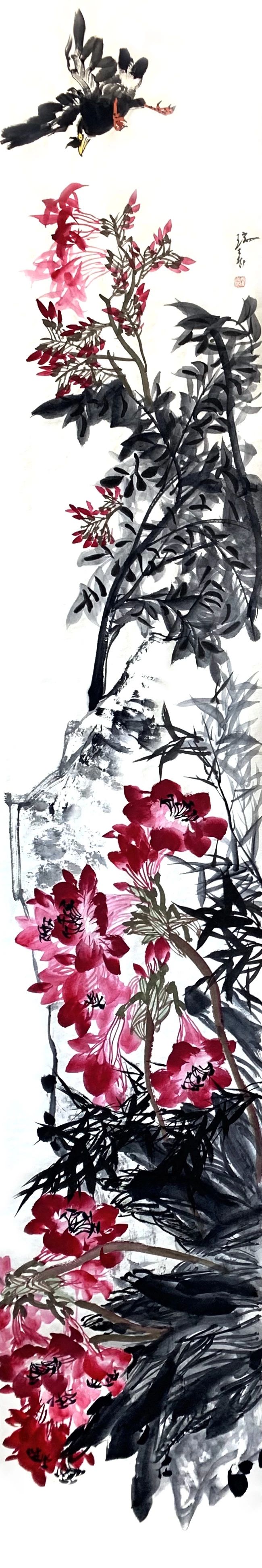 《朱顶红》纸本240cmx40cm