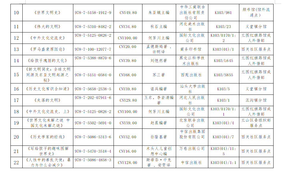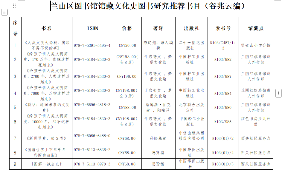 兰山区图书馆馆藏文化史图书研究推荐书目