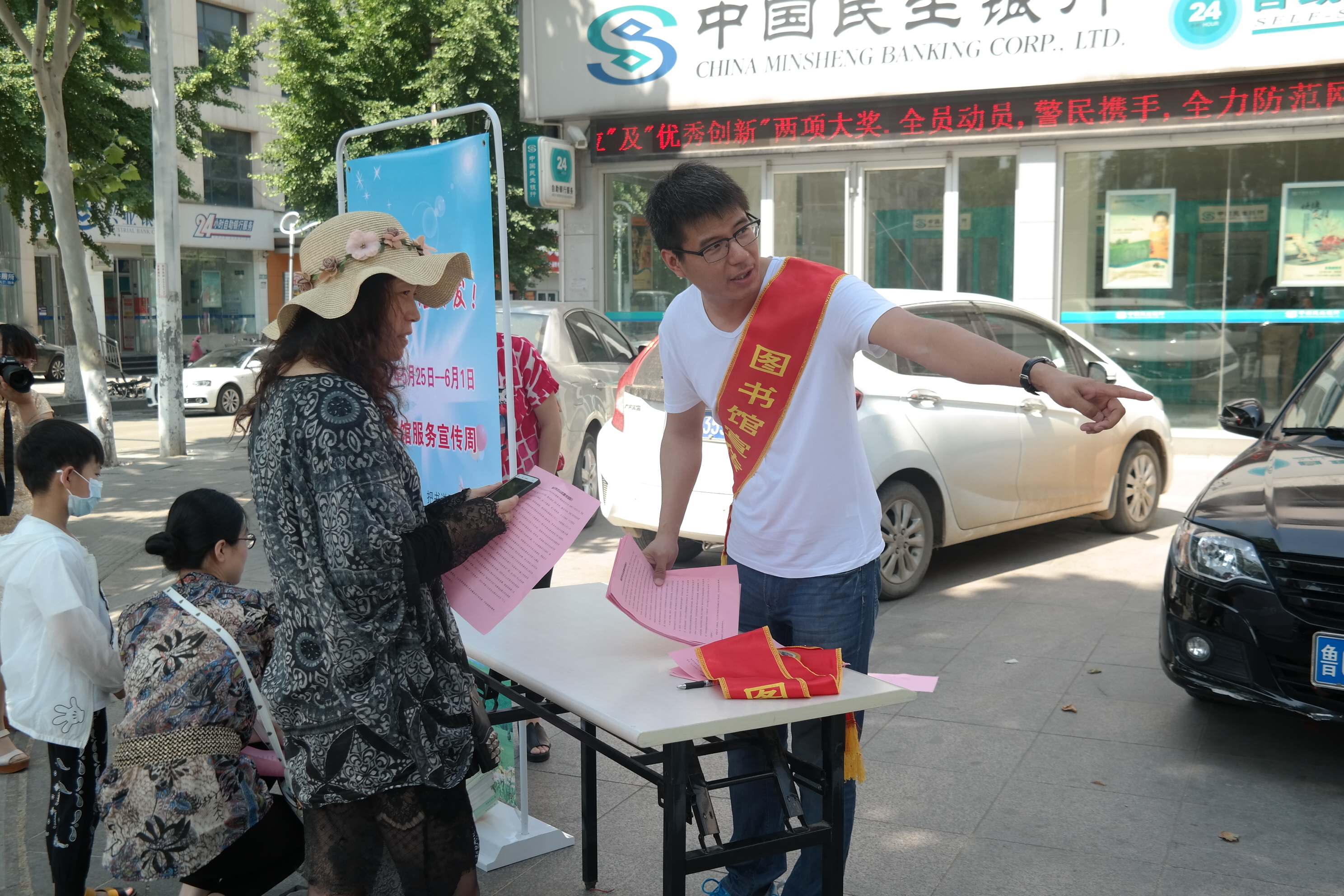 5月28日上午,区图书馆在馆前通过板报宣传、悬挂宣传横幅、发放宣传资料等方式宣传图书馆的服务内容和免费阅读推广活动。同时还现场免费为市民们办理借阅证,热情解答各种咨询服务。